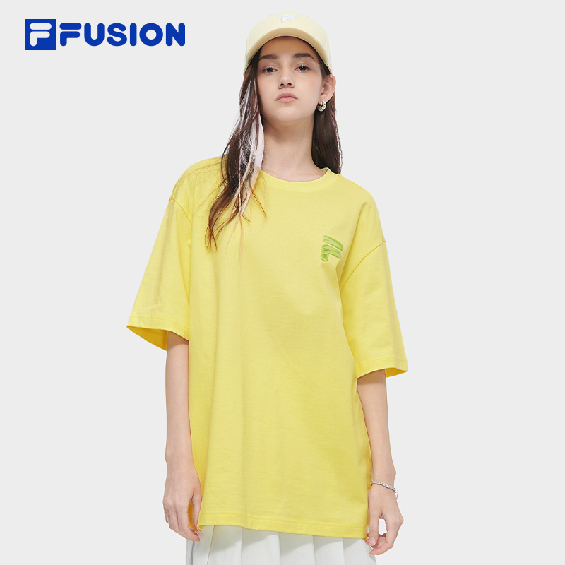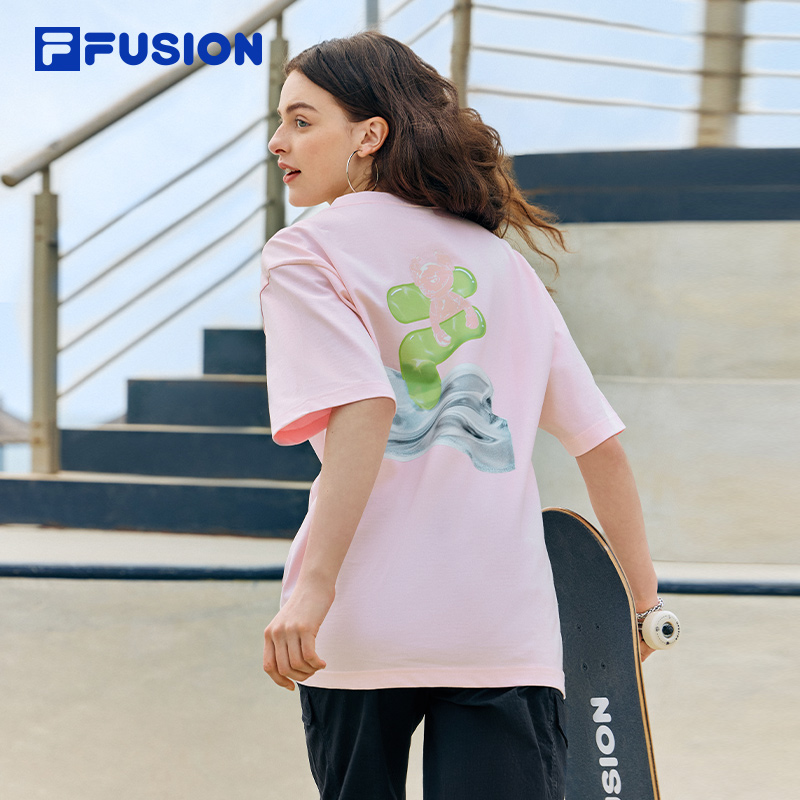 FILA FUSION斐乐潮牌男士针织短袖T恤夏季新款多彩纯棉圆领T恤女