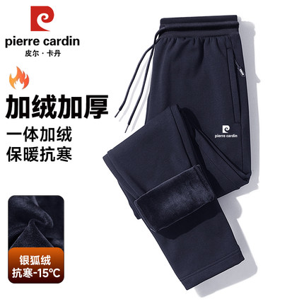 皮尔卡丹加绒加厚裤子男冬季纯棉休闲直筒宽松外穿保暖运动长裤男