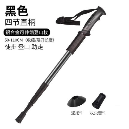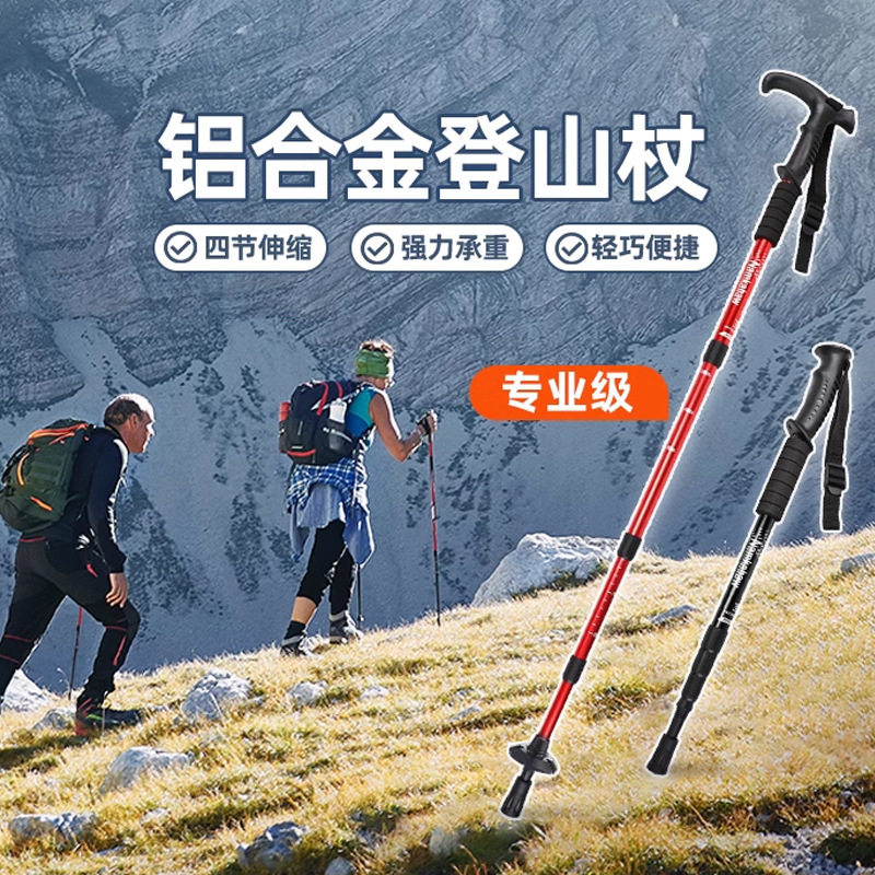 户外登山杖4节超轻铝合金T柄弯柄直柄伸缩爬山手杖拐杖多功能轻便