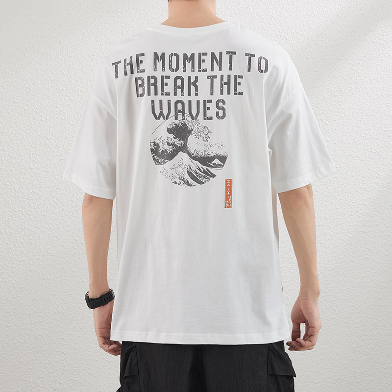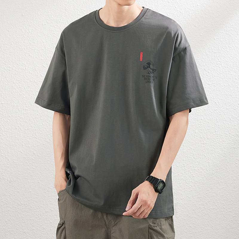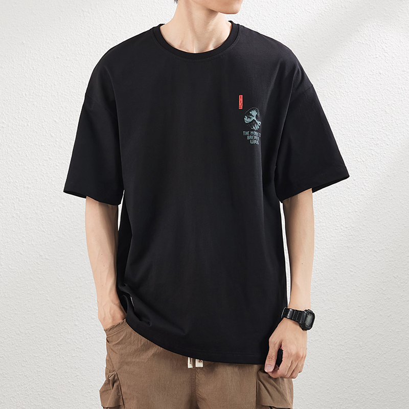 汉斯卡 短袖t恤男纯棉潮牌夏季新款潮流圆领宽松大码印花黑色上衣