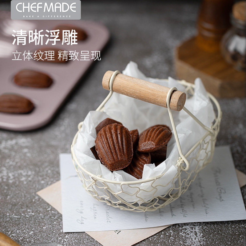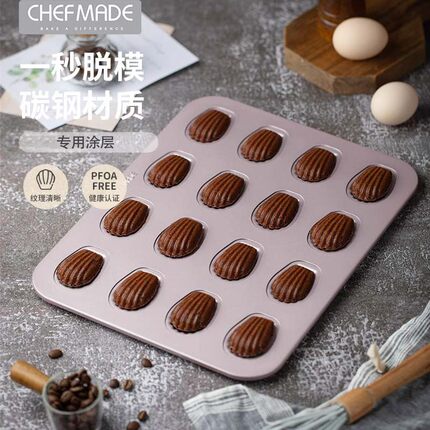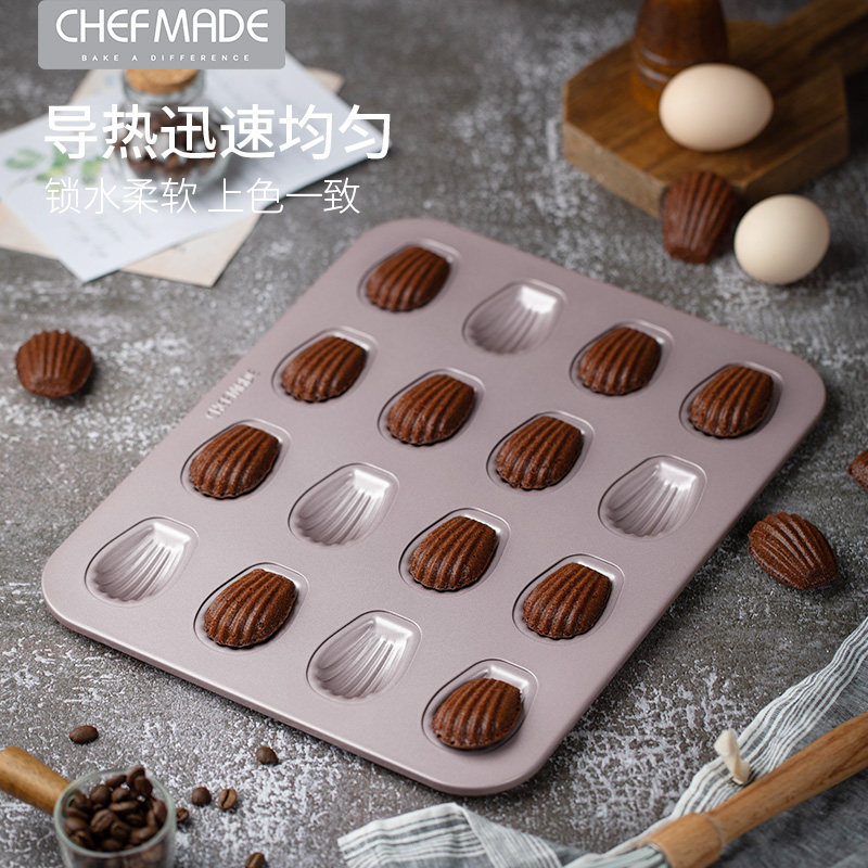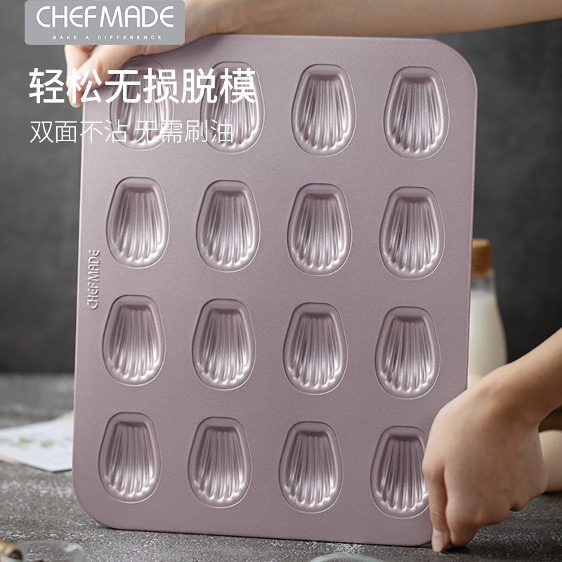 学厨 金色16连杯不粘迷你日式玛德琳贝壳扇贝形蛋糕家用烘焙模具