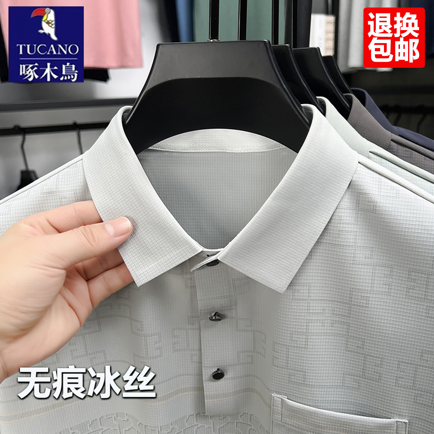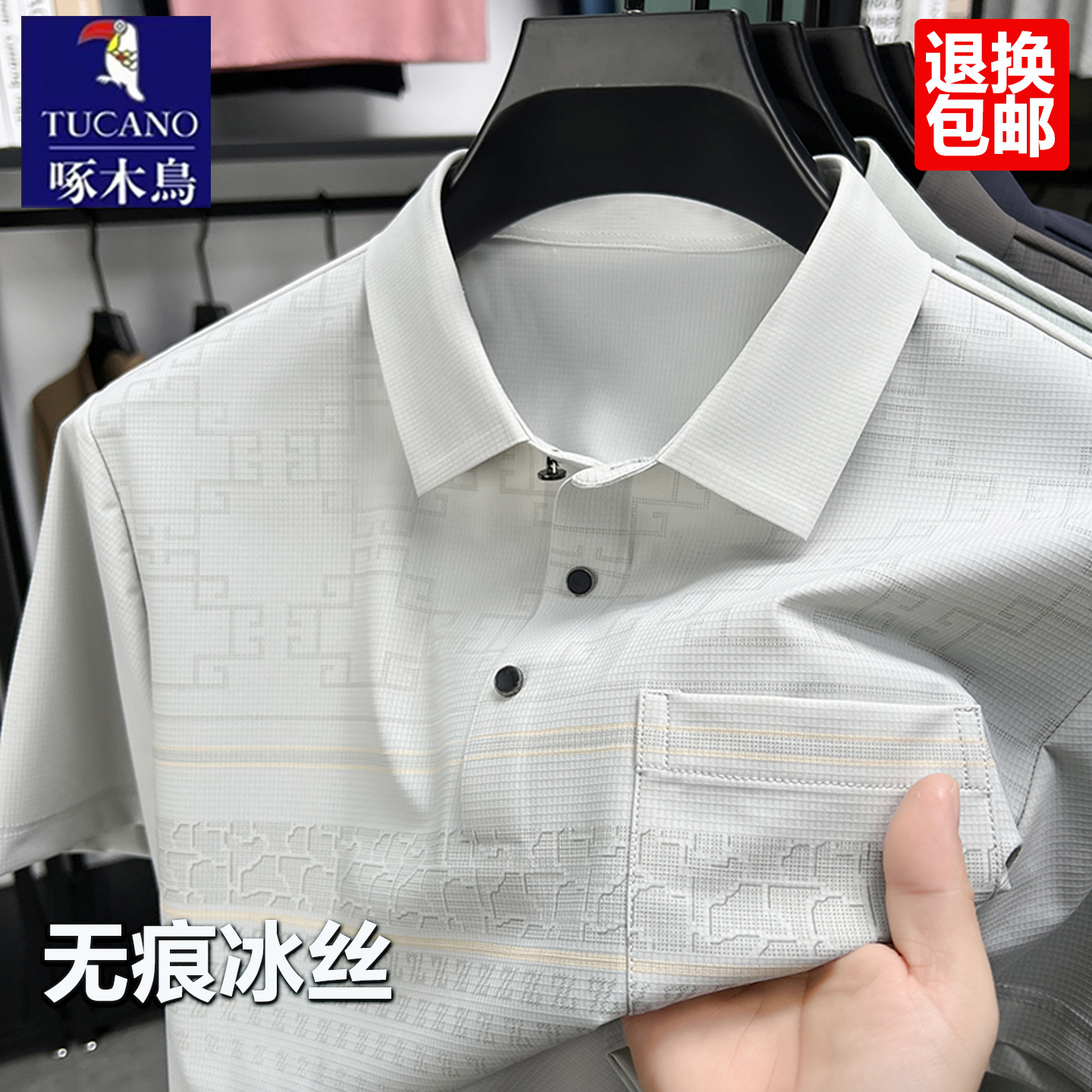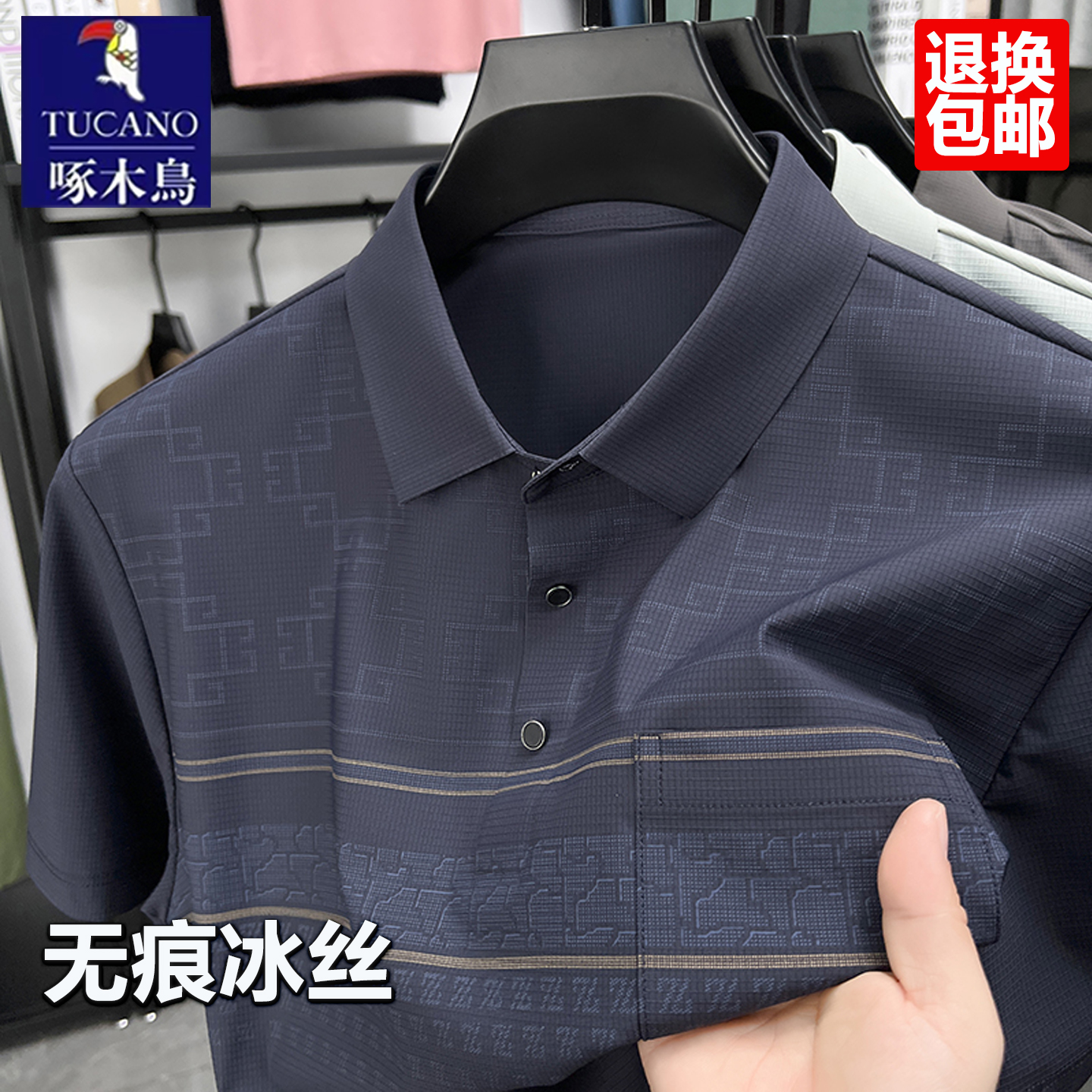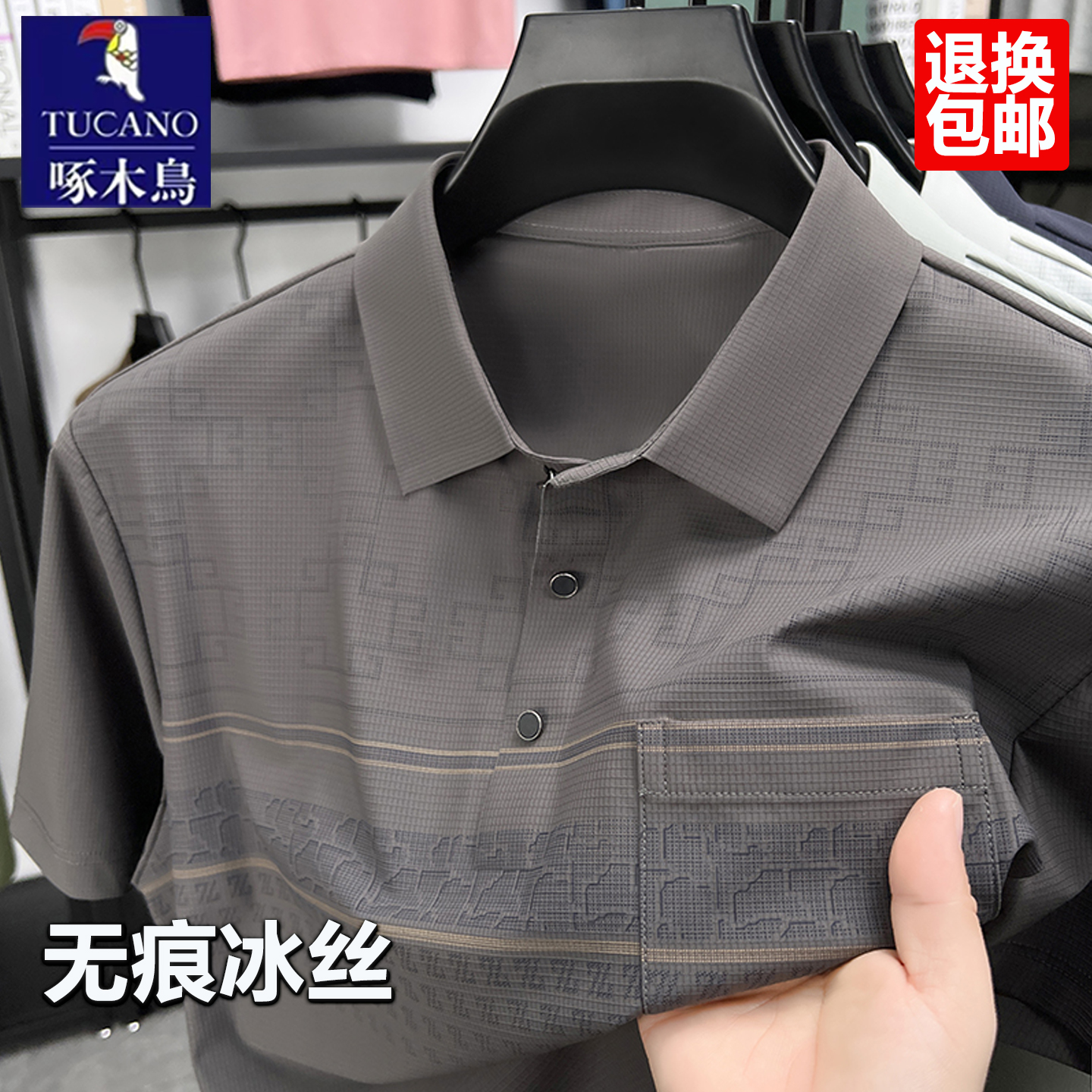 啄木鸟男士冰丝短袖polo衫2025夏季抗皱透气t恤中老年装爸爸上衣T