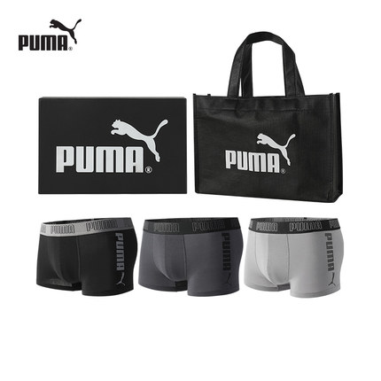 PUMA彪马男士平角内裤纯棉中腰透气四角裤高端礼盒3条送男友礼物