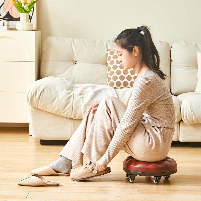家用美缝凳子滑轮矮凳带轮小凳子带娃儿童学步凳可移动换鞋凳圆凳