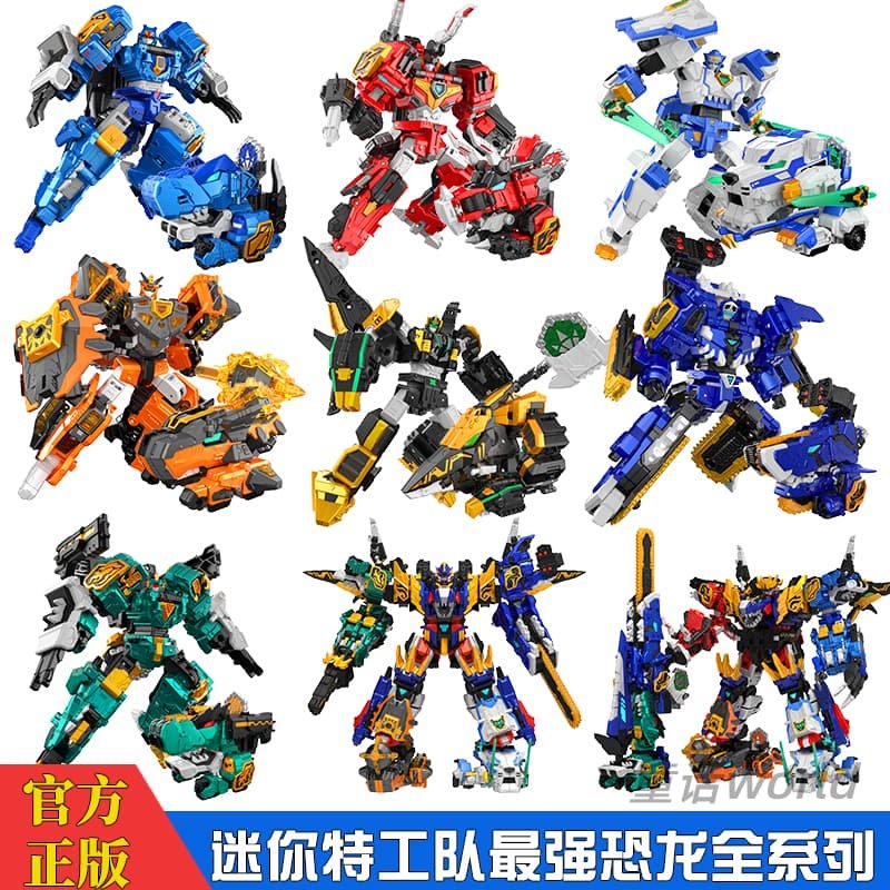 迷你特工队正版最强恐龙霸王龙三角龙变形机甲机器人战车金刚玩具