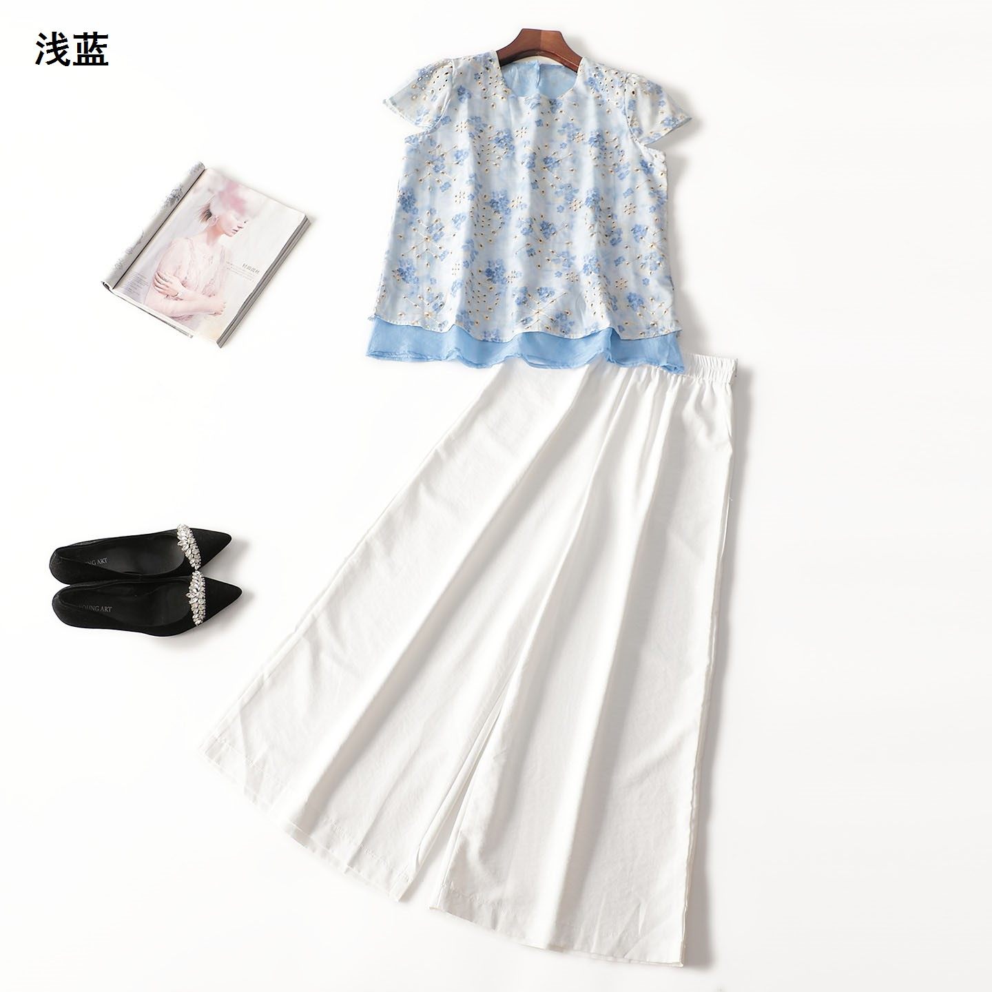 411928 夏上衣裤子套装 女长款短袖圆领现货