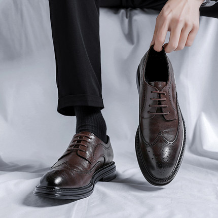 布洛克皮鞋男雕花英伦风真皮高级感韩版西装鞋增高婚礼新郎结婚鞋