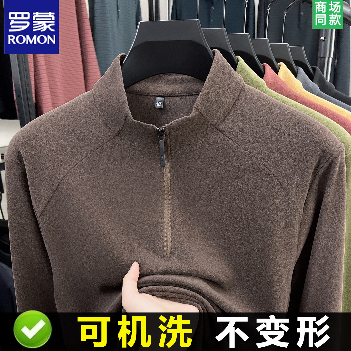 罗蒙德绒打底衫男士春秋纯色半拉链领卫衣内搭裸感双面绒长袖T恤