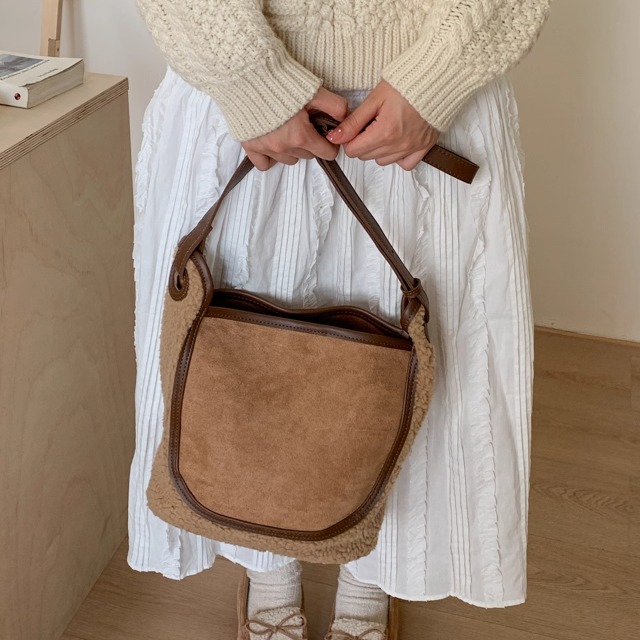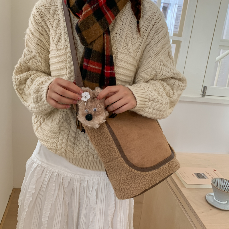 美拉德复古羊羔毛水桶包女2025年高级感大容量小众单肩斜挎包包女