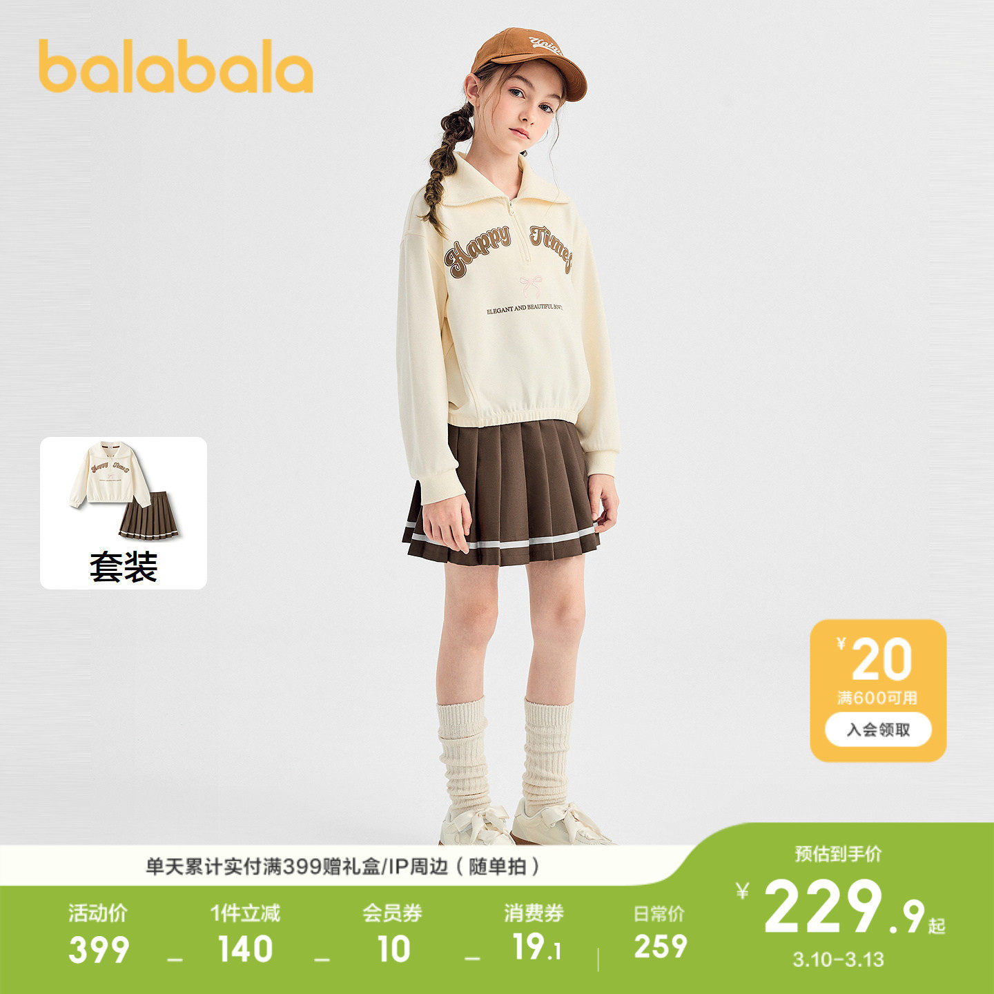 巴拉巴拉童装女童套装儿童长袖两件套2026休闲春装百褶裙时尚潮酷