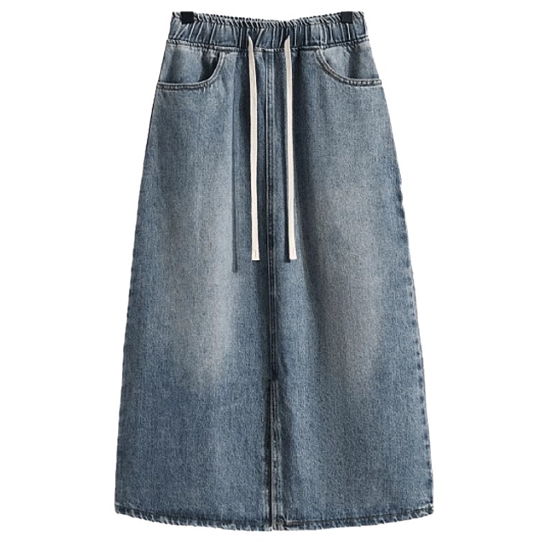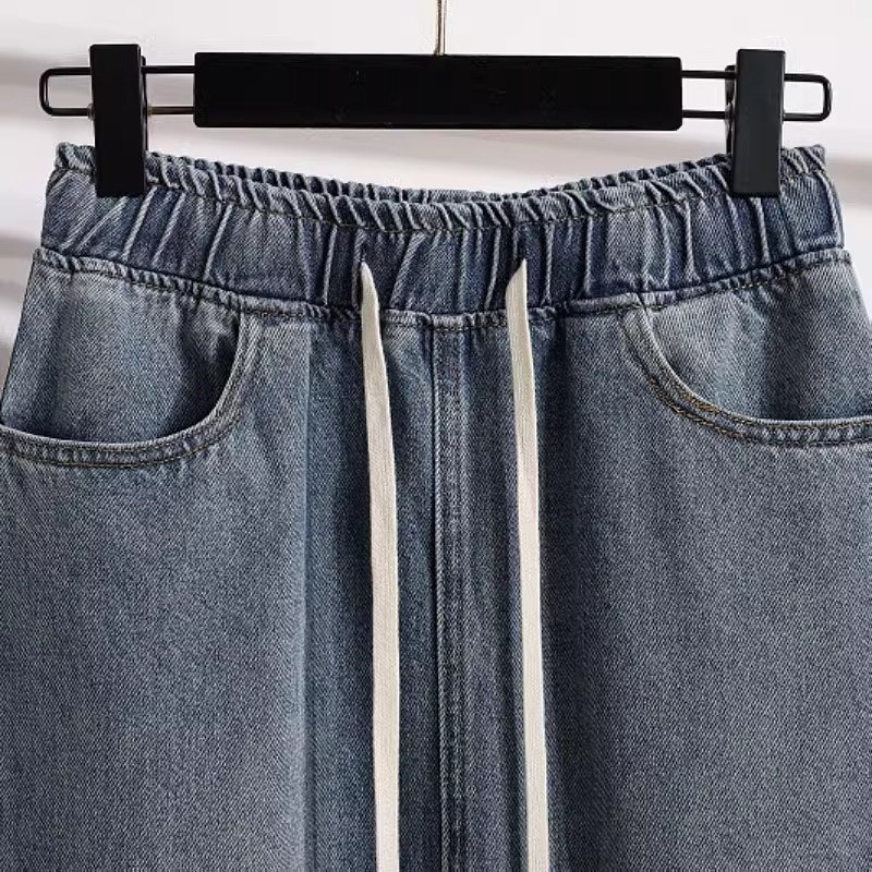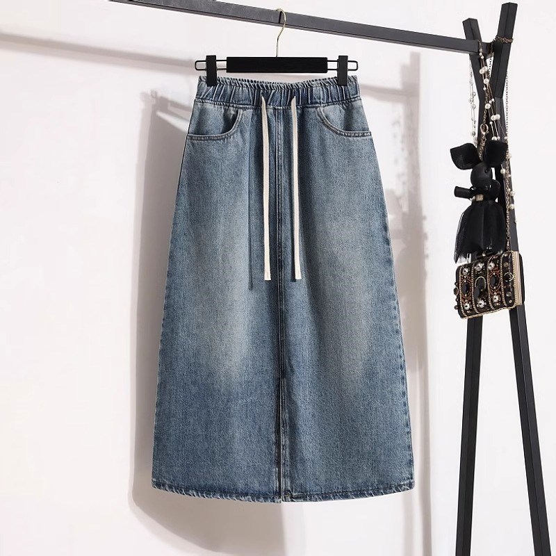 大码女装2025春秋新款胖mm牛仔裙高腰显瘦松紧腰中长款a字半身裙