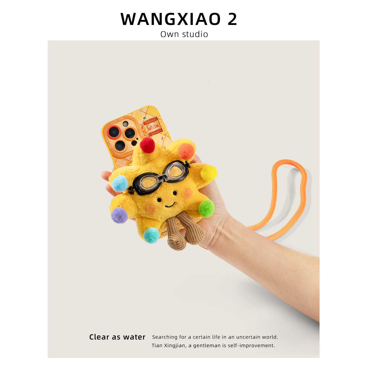 WANGXIAO 2彩虹太阳花手机背夹斜跨挂件创意毛绒公仔手机链挂饰品