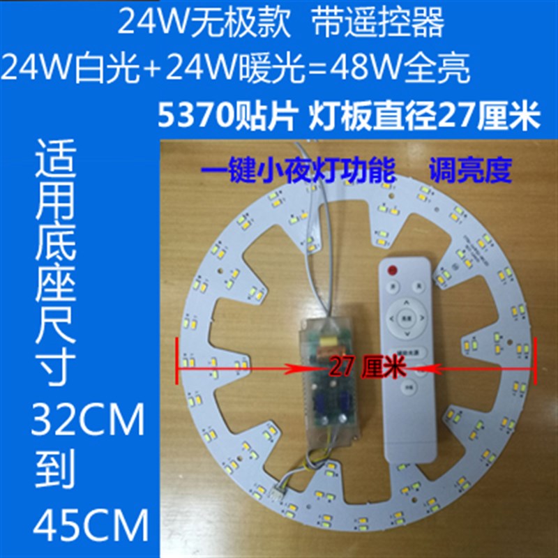 遥控LED灯片节能照明灯珠家用吸顶灯板改造灯盘改装圆形灯条灯芯
