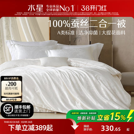 水星家纺100%蚕丝被子母二合一被