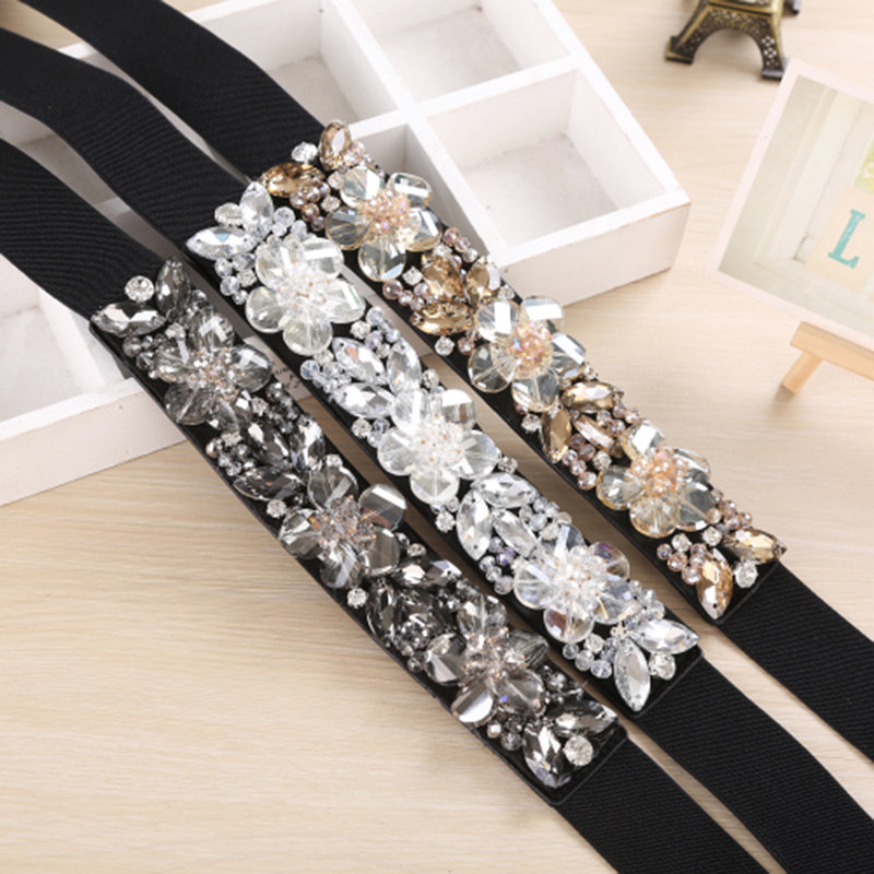 腰带女配毛衣裙松紧水晶装饰腰封