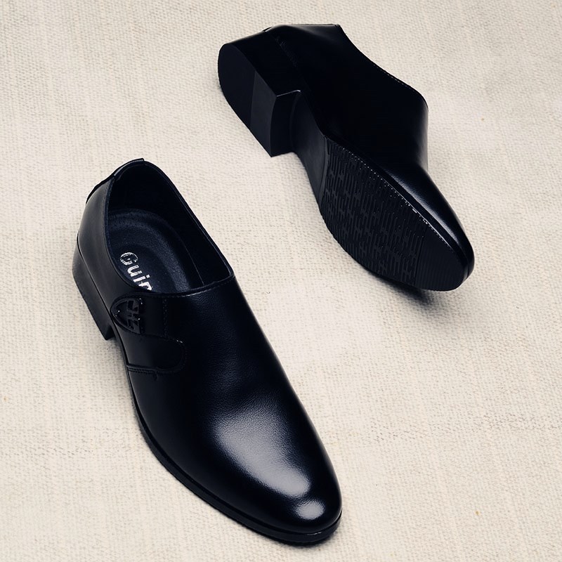 一脚蹬尖头黑皮鞋男工作青年英伦商务休闲鞋男生夏天皮鞋韩版潮流