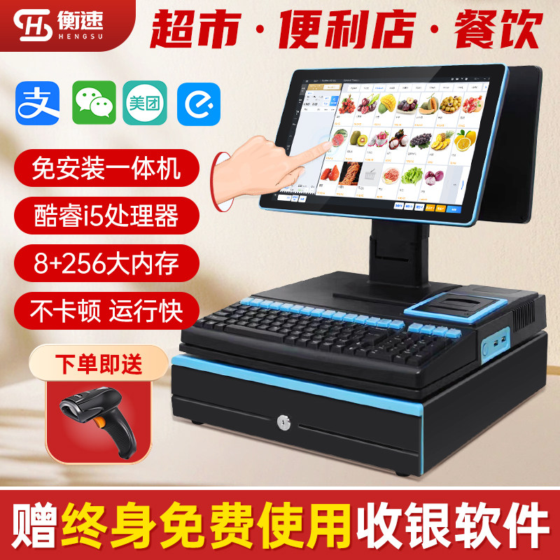 收银机收款机超市收银机一体机烟酒餐饮水果称重零食便利店士多宠物药店文具扫码收银系统智能小型商用收银机