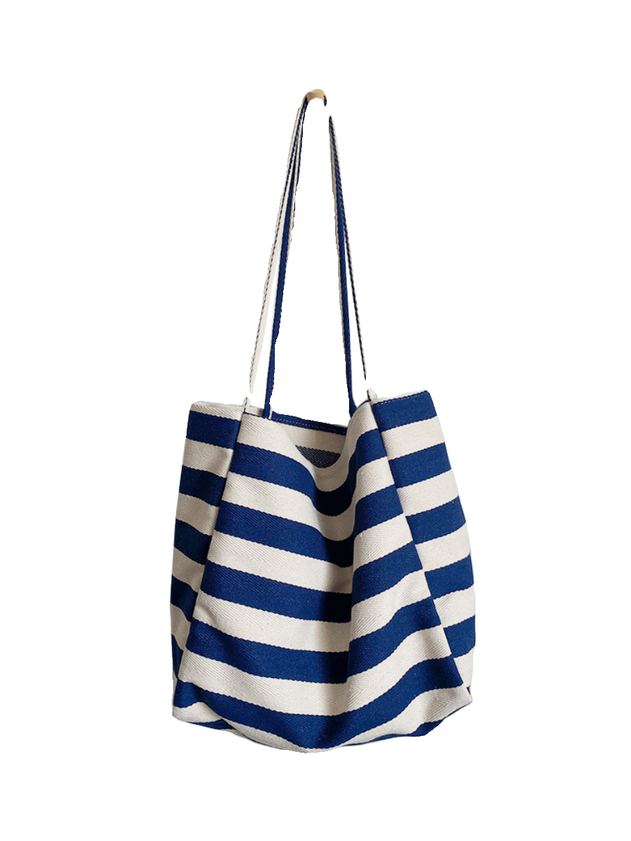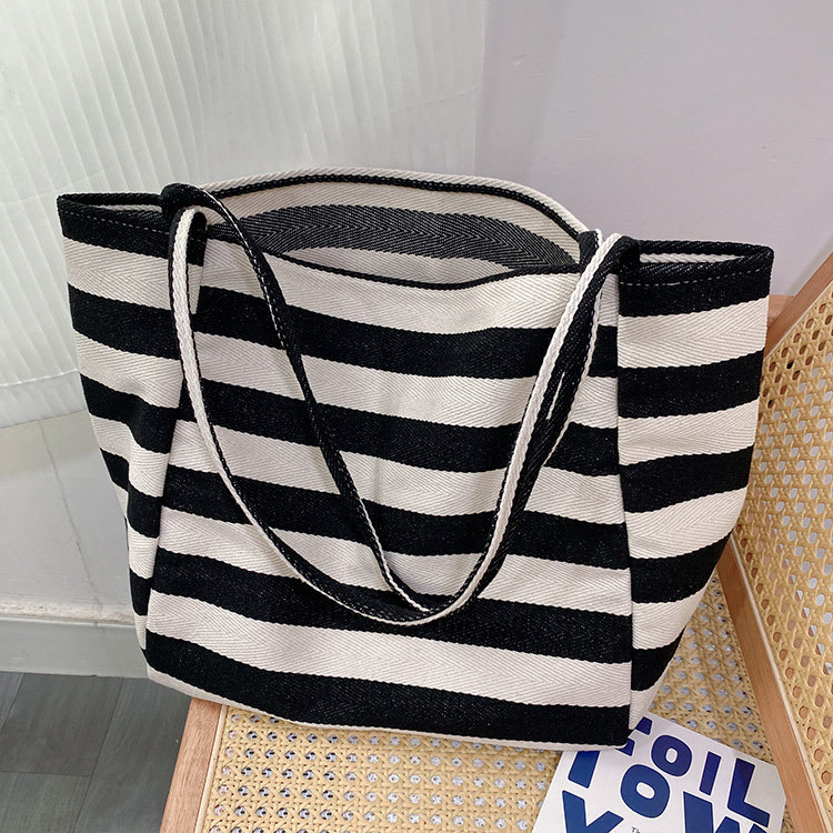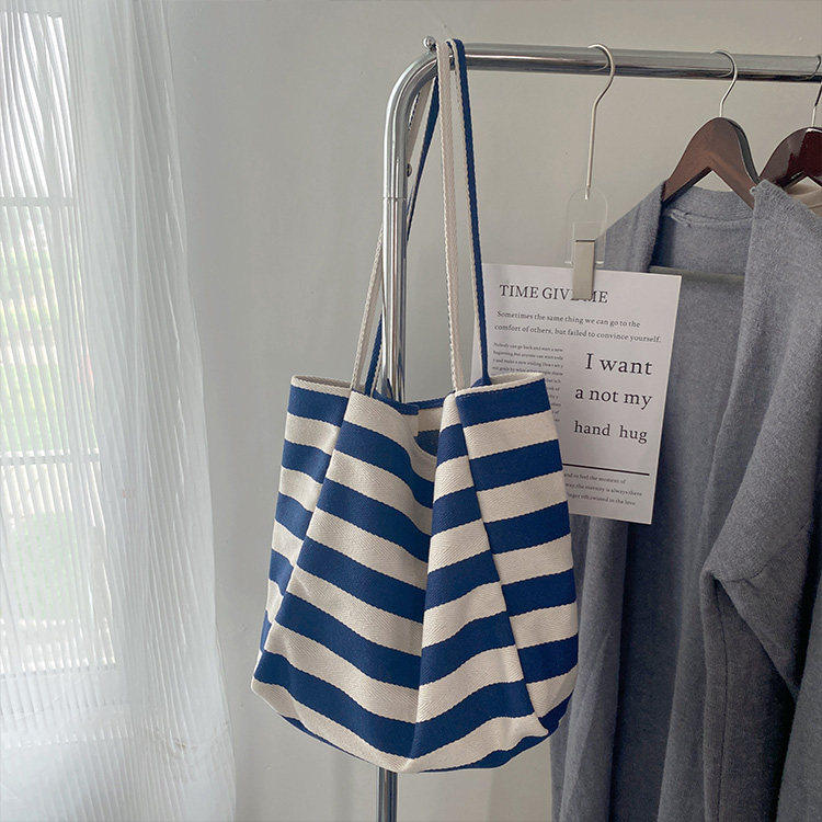 ins简约条纹帆布包女包 大容量休闲手提袋沙滩度假风单肩包大包