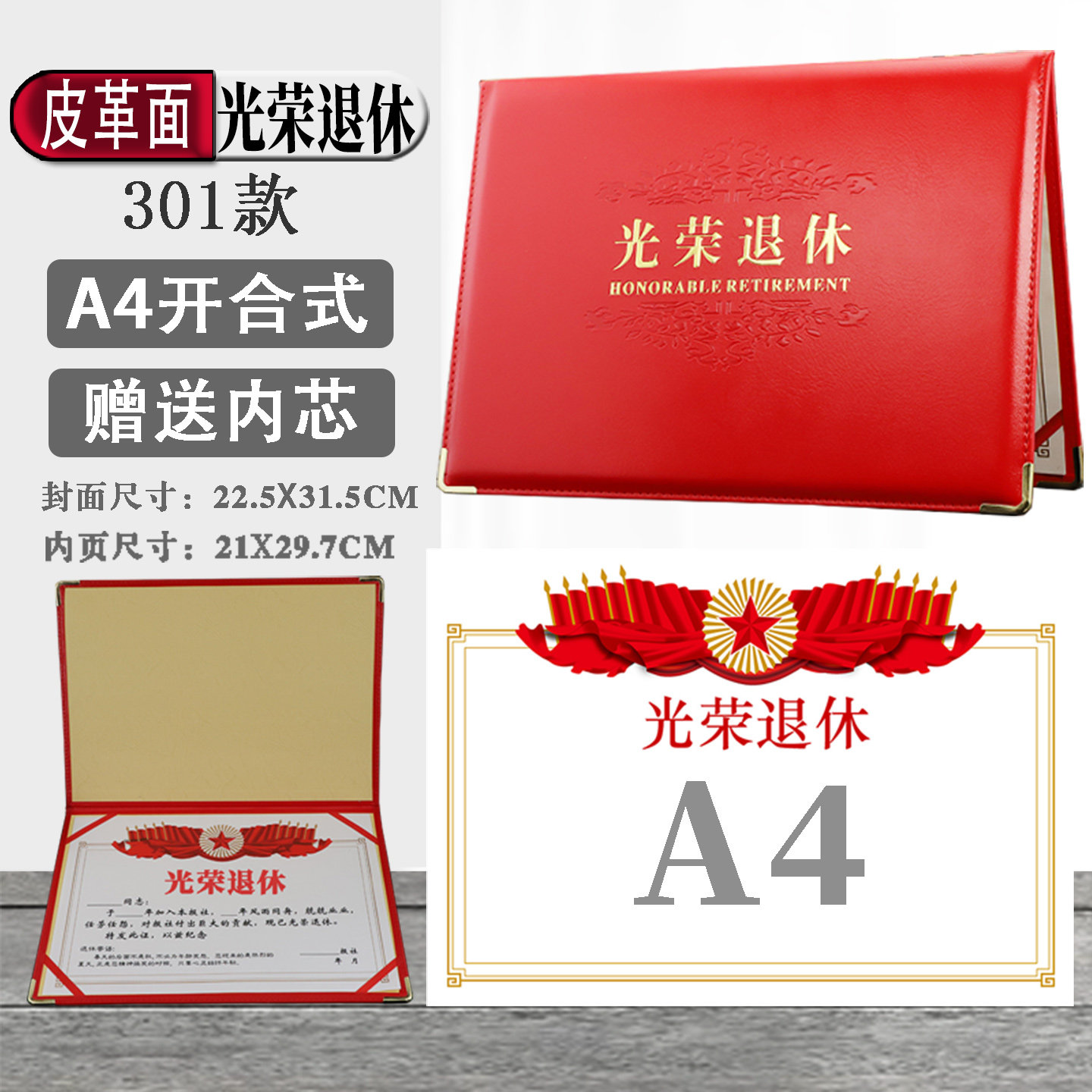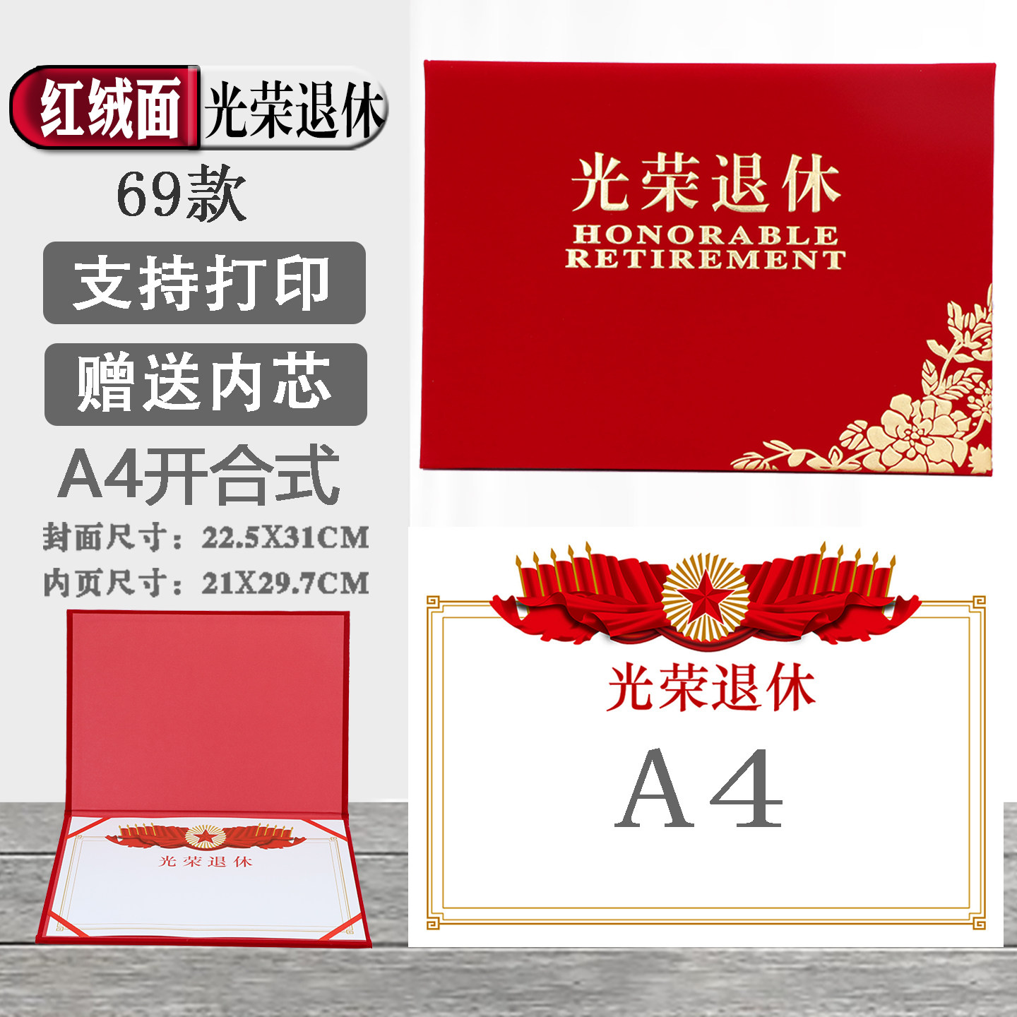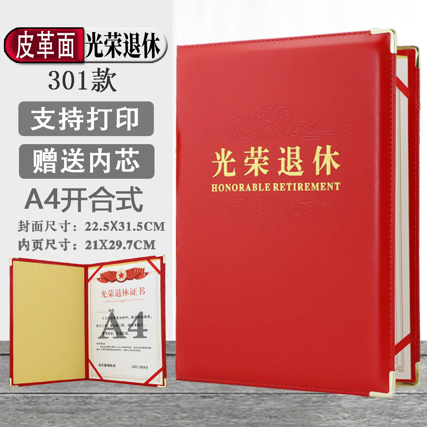 启恒三折式奥丽丝纹A4光荣退休证书离休离业欢送书业企事业单位个人光荣榜纪念品荣誉证书封面烫金外壳定制