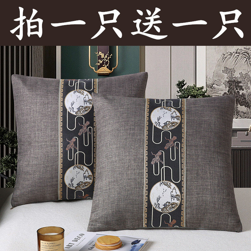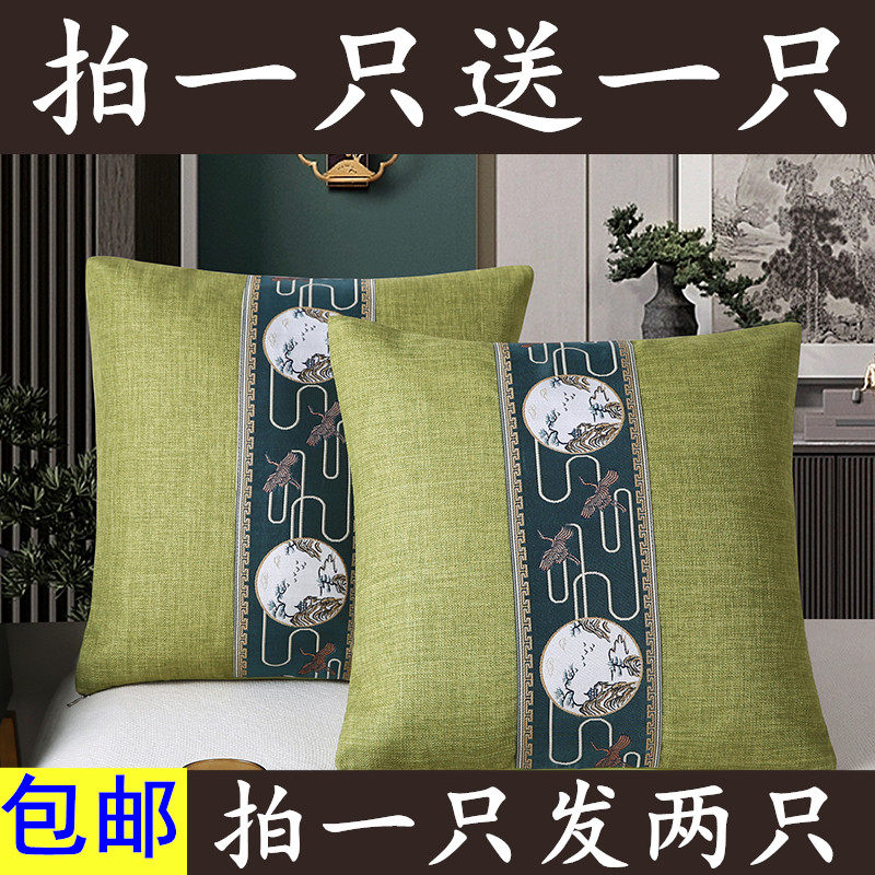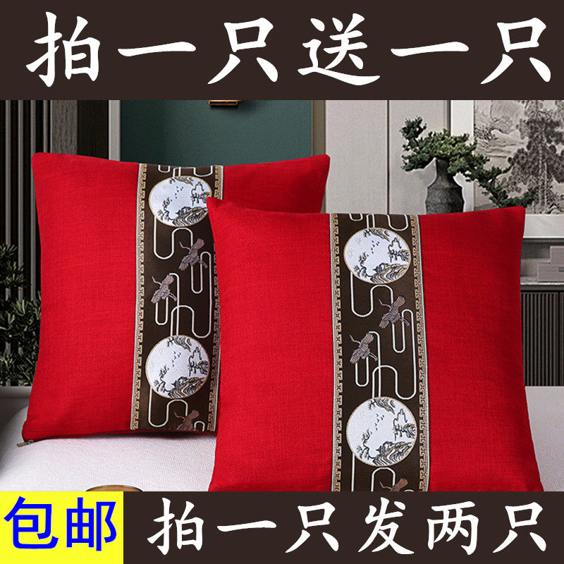 新中式加厚亚麻实木沙发腰靠枕古典中国风抱枕套可拆洗靠枕腰枕