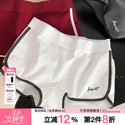 共享假期!女生复古美式运动风平角裤四角纯棉中腰内裤高开叉不勒