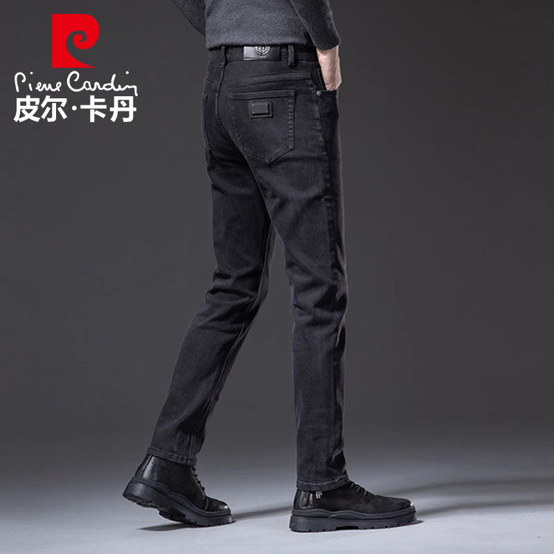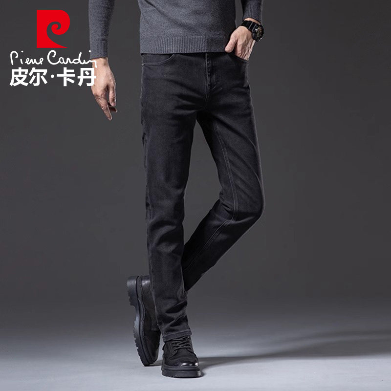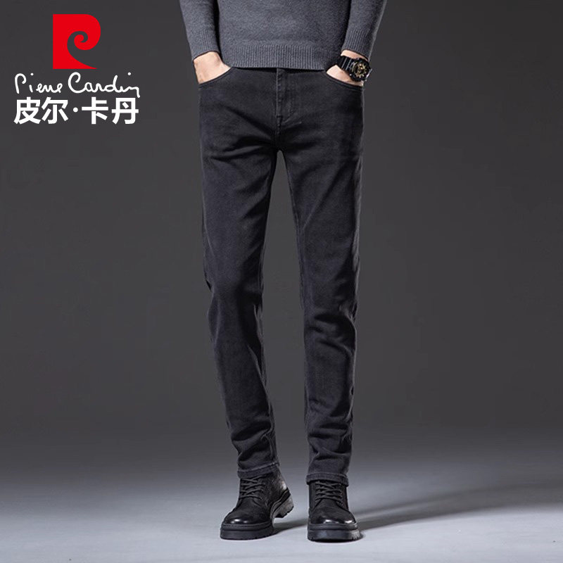 皮尔卡丹秋冬季新款牛仔裤男修身直筒弹力百搭高端2025加绒裤子厚