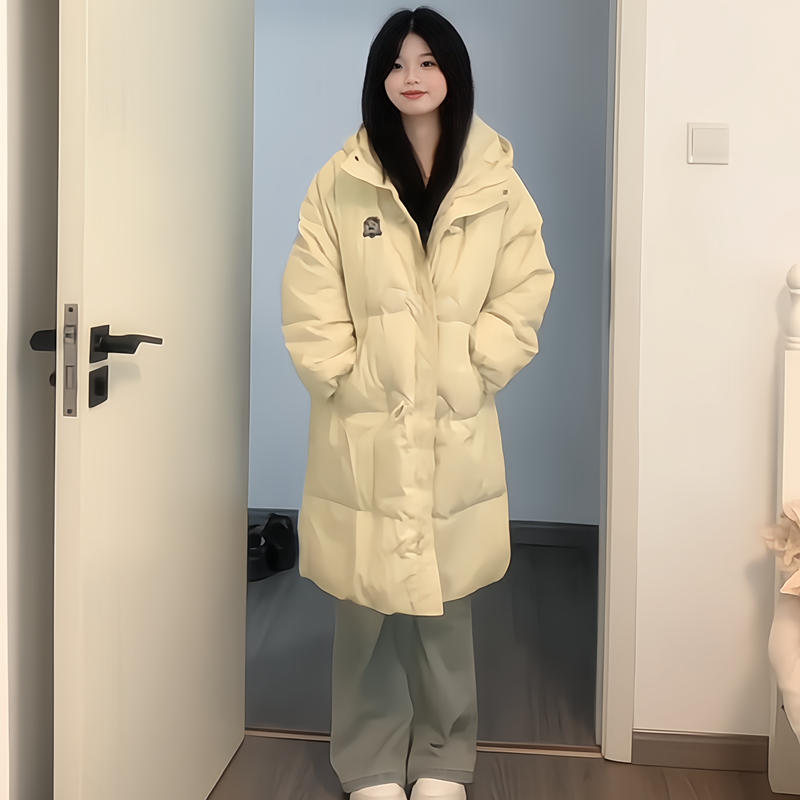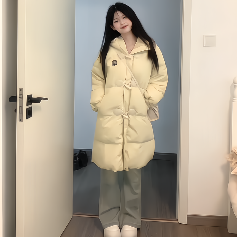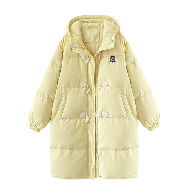 韩系冬装斗篷牛角扣连帽羽绒服女2025新款时尚宽松白鸭绒保暖外套