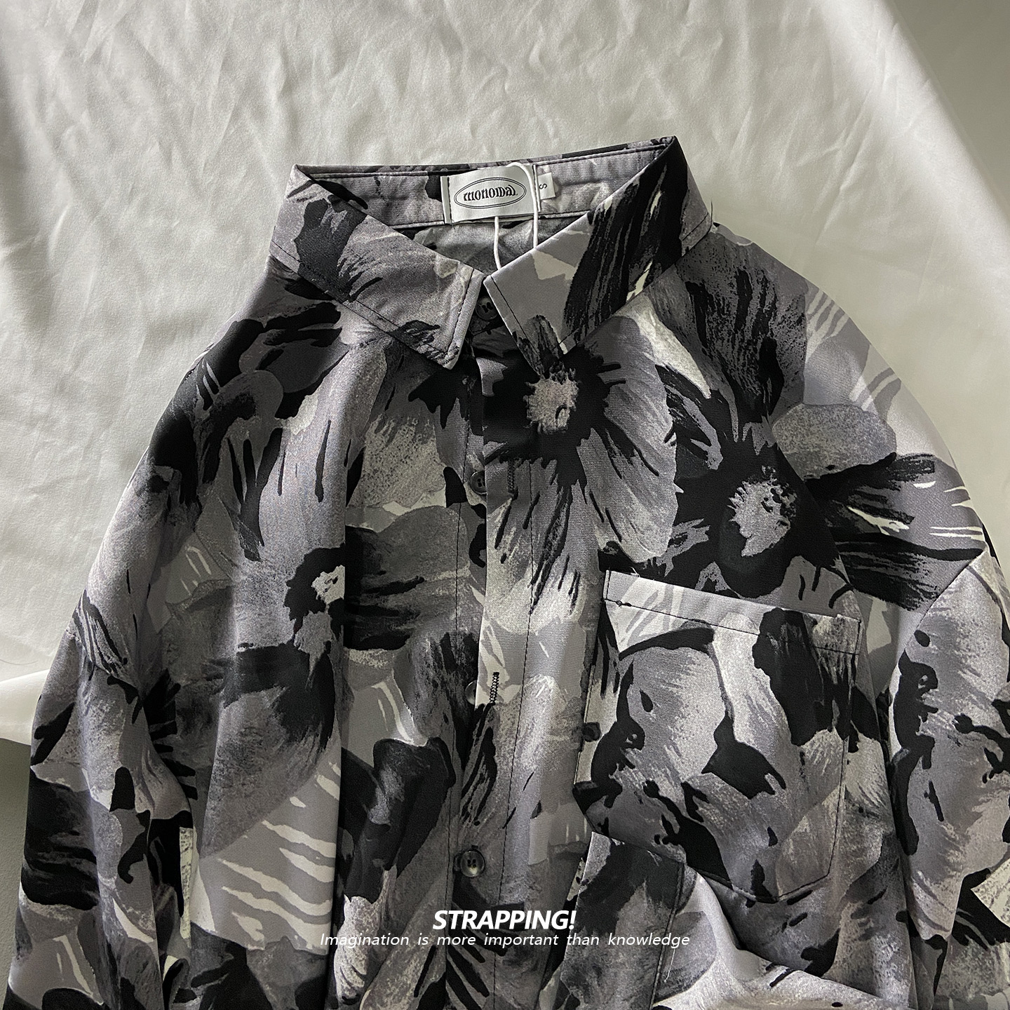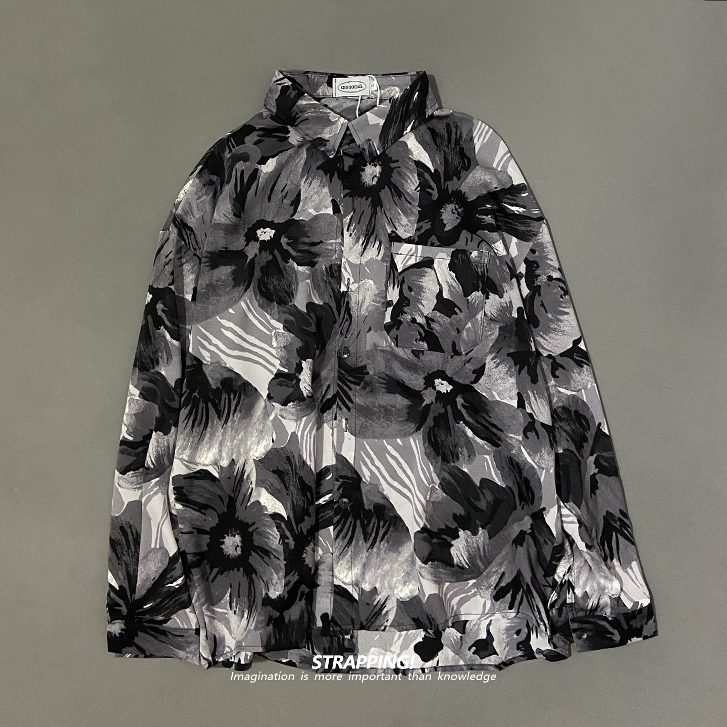 STRAPPING水墨印象花卉碎花长袖花衬衫港风复古日系男女痞帅春秋