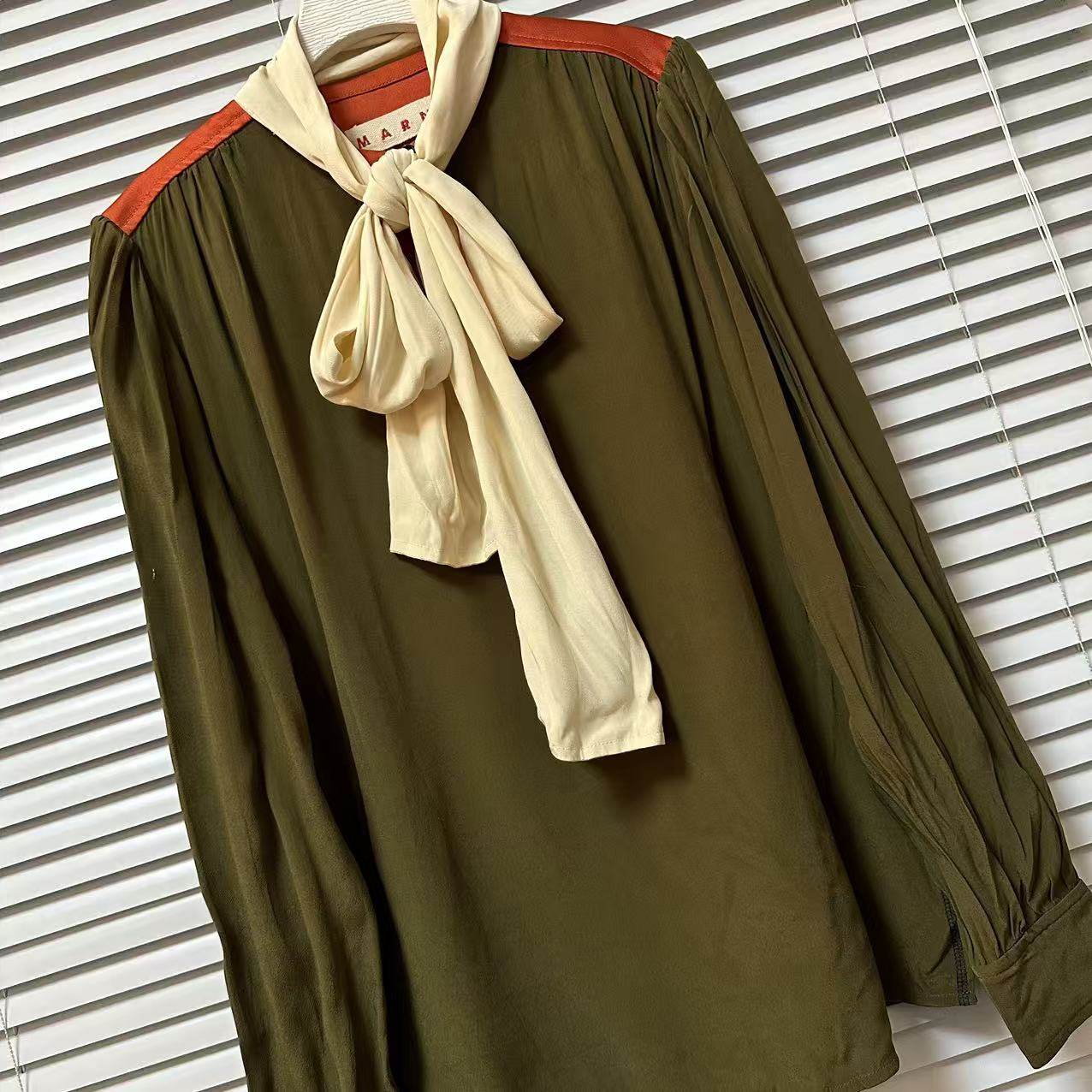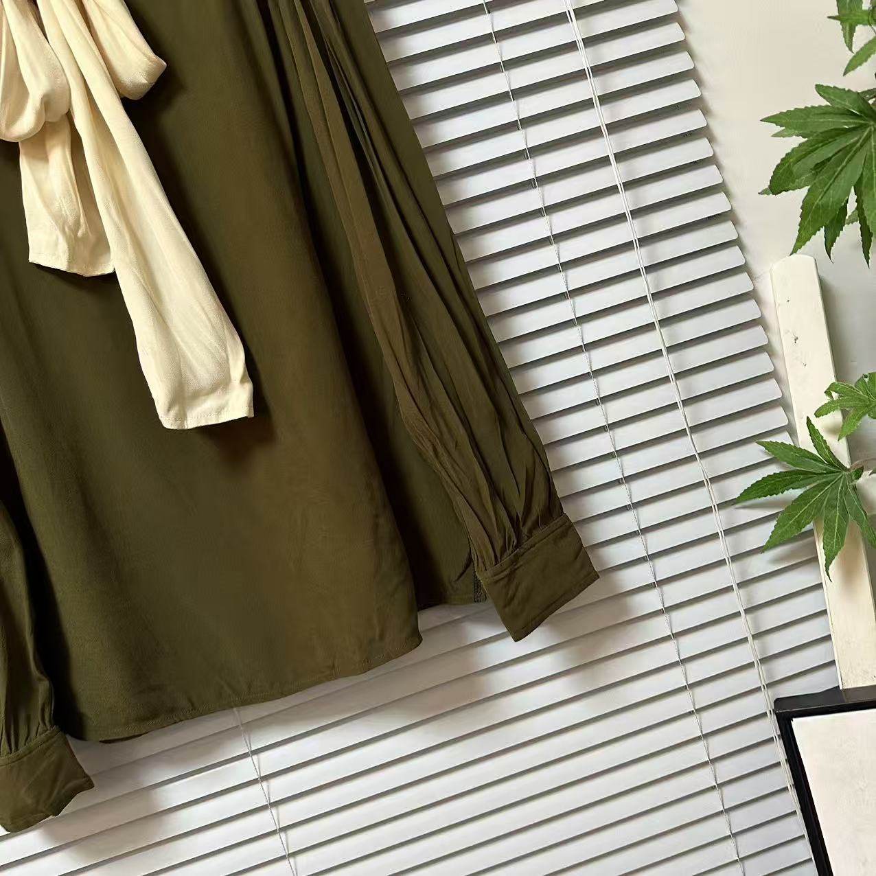 0116-39美拉德蝴蝶结系带含真丝醋酸衬衫长袖高级感设计飘带上衣