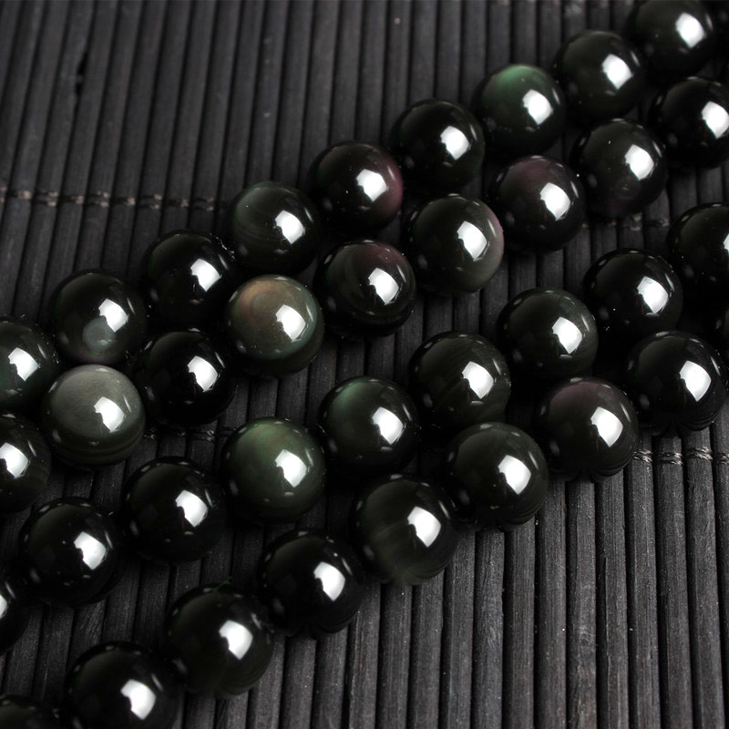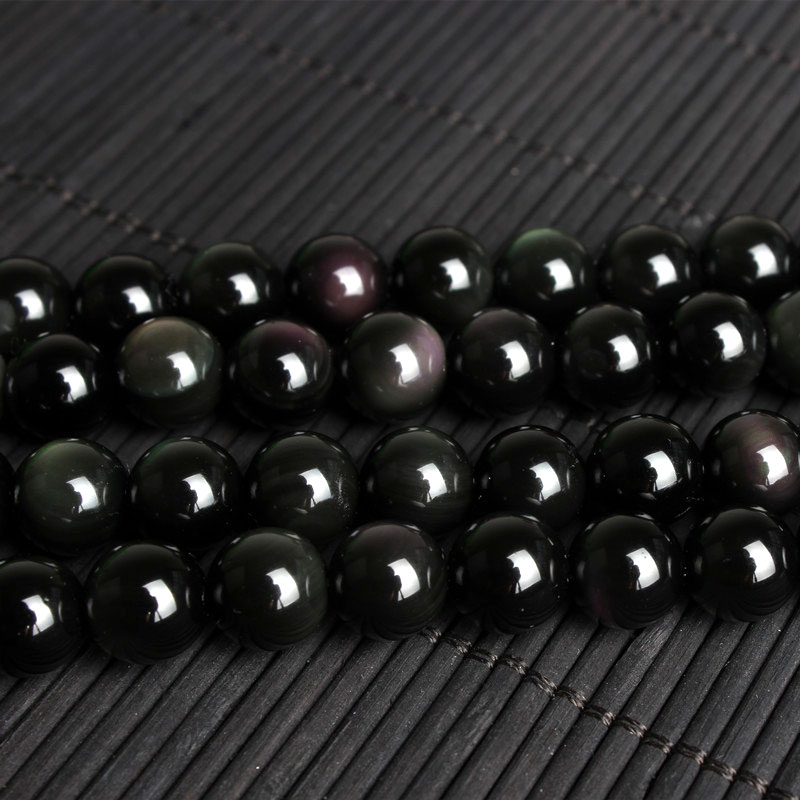 天然彩虹眼黑曜石散珠半成品diy手链项链配件单眼双眼黑曜石水晶