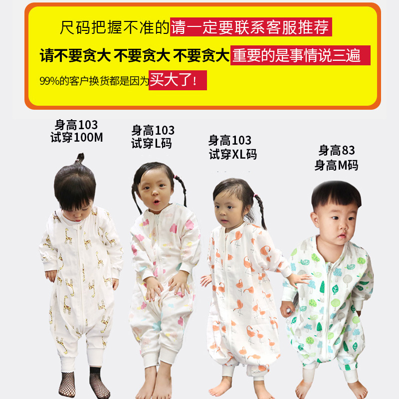 春秋儿童三层纱布男宝宝夏季薄款女孩婴儿分腿睡袋防踢被四季