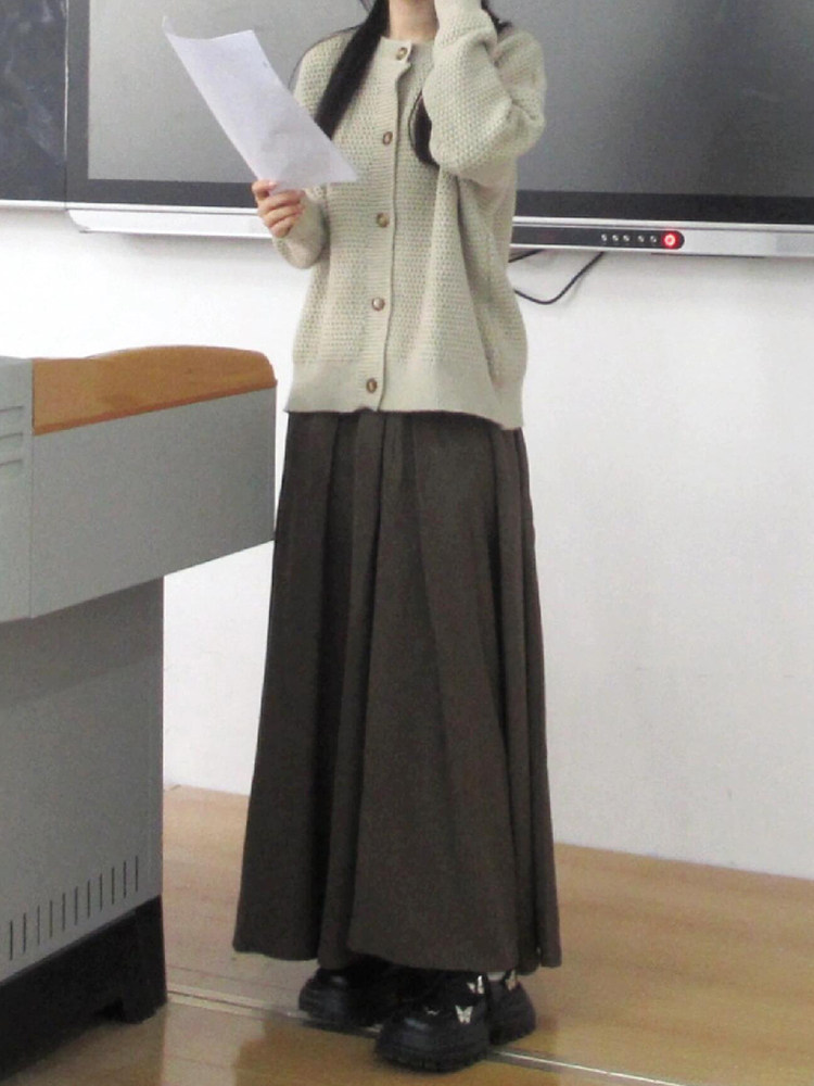 春季美拉德棕色百褶半身裙长款a字大码女胖mm显瘦遮肚伯克利裙子