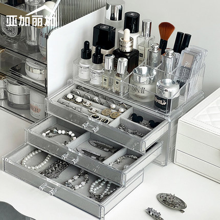 化妆品收纳盒抽屉式防氧化首饰盒高级感梳妆台桌面护肤品置物架子