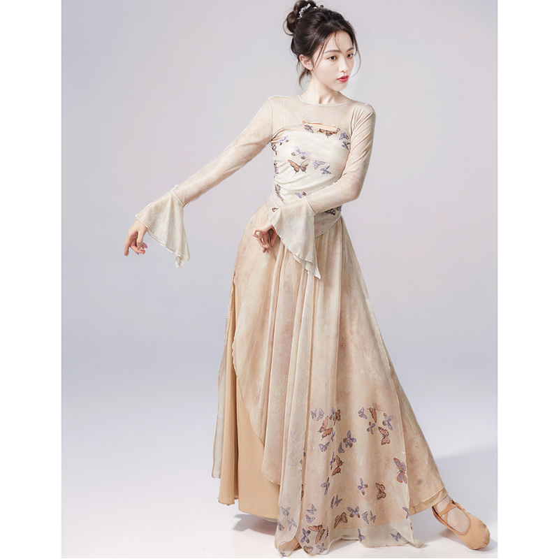 古典舞服装女飘逸练功服中国风水墨蝴蝶身韵服纱衣上衣裙裤演出服