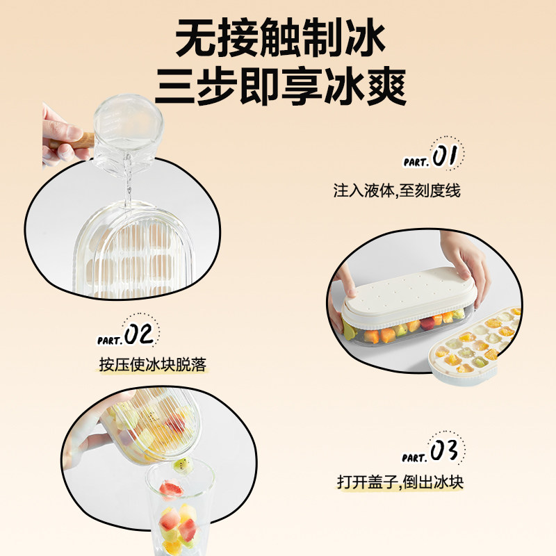 苏泊尔一键注水式冰格制冰格食品级材质冻冰家用冰箱自制冰块模具