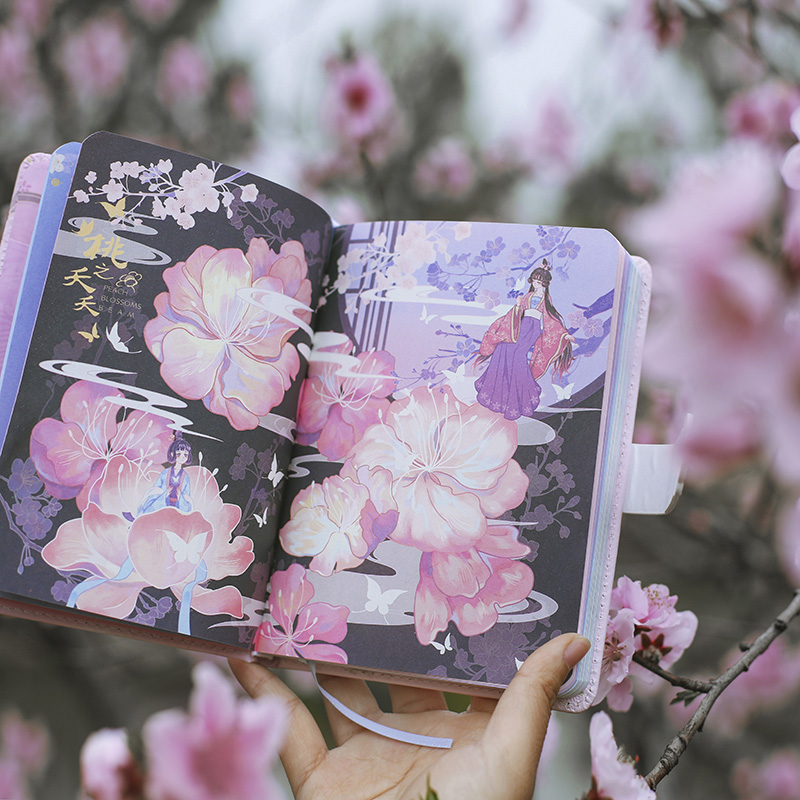 玖玖文房 桃之夭夭古风彩页磁扣本3D立体插画笔记本子文艺记事本少女心日记本网红手账学生文具创意生日礼物