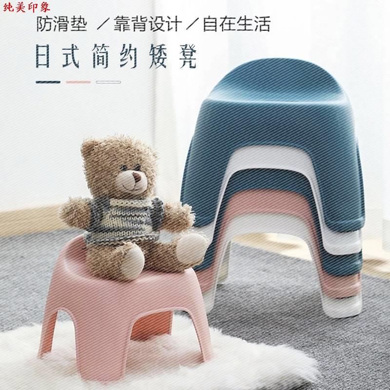 塑料靠背凳子客厅懒人换鞋椅矮凳创意家用儿童小板凳加厚可爱方凳