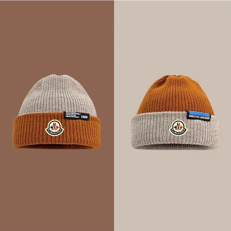 【官网正品】蒙口钢琴针织拼色包头帽男女冬季百搭显脸小毛线帽子