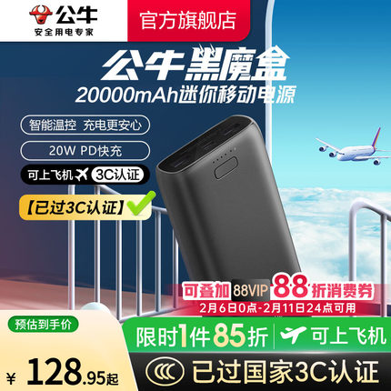 【3C认证充电宝】公牛充电宝自带线大容量PD双向快充便携式移动电源2w毫安适用于苹果mini充电宝可上飞机高铁