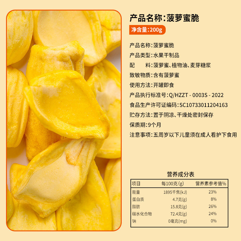 万达菠萝蜜脆200g海南特产冻干水果干蜜饯果脯脆片孕妇儿童零食