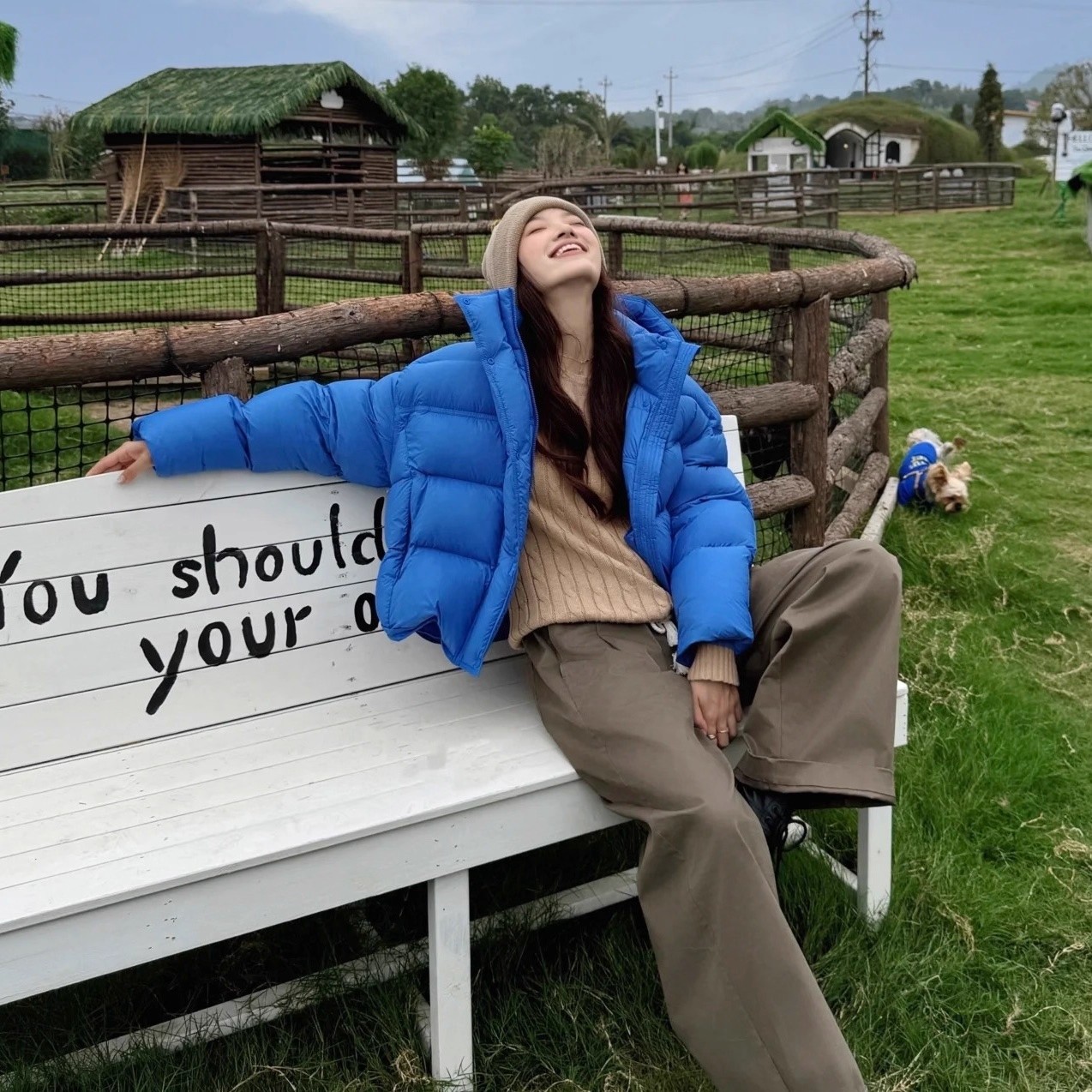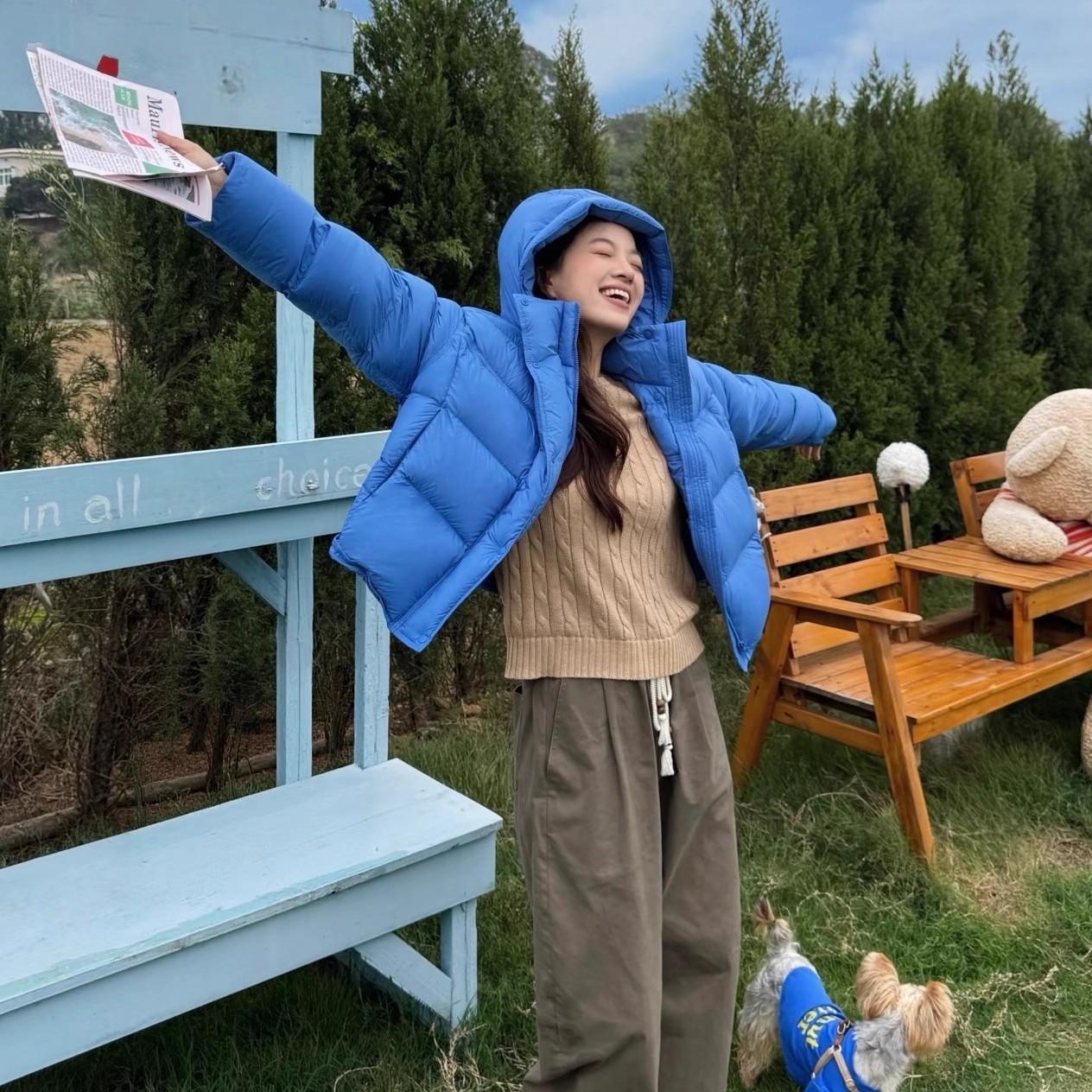 2025冬季新款巨好看布鲁斯蓝色羽绒服女短款90白鸭绒高充绒量外套