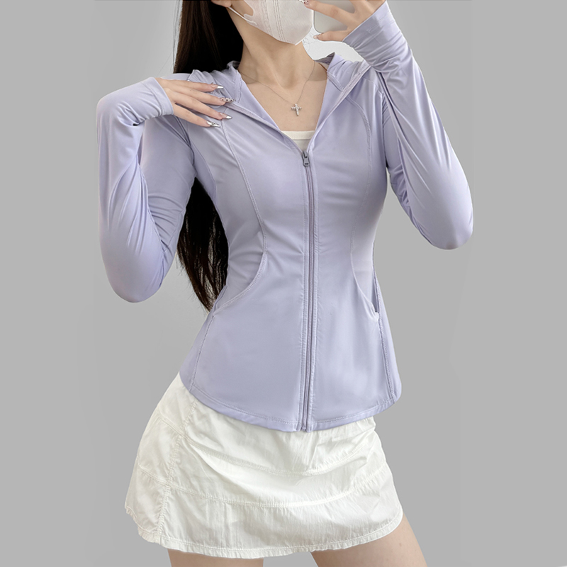 粉色修身连帽长袖短款外套女夏季显瘦休闲运动瑜伽服防晒开衫上衣