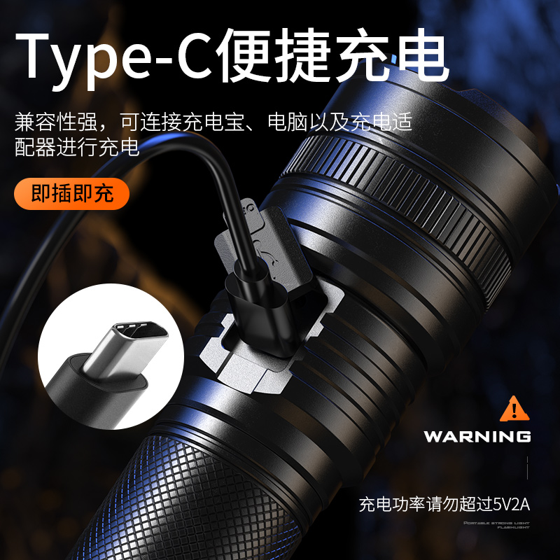 神火Y26白激光聚光远射手电筒强光充电高亮户外家用战术变焦便携