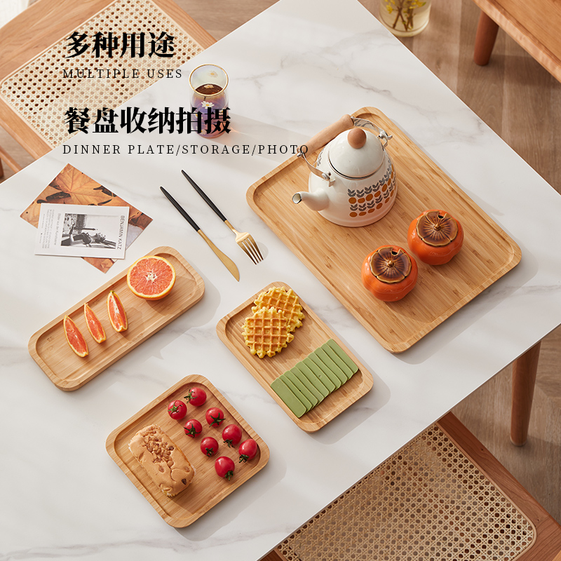 日式竹制木托盘实木盘长方形竹盘木盘子木质托盘圆盘茶托盘烧烤盘