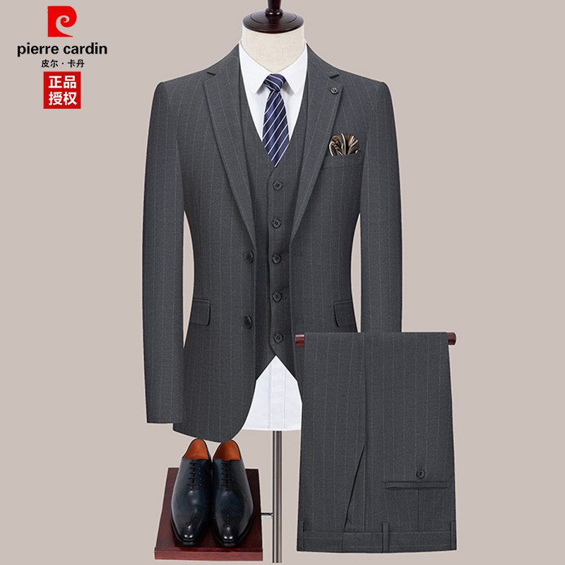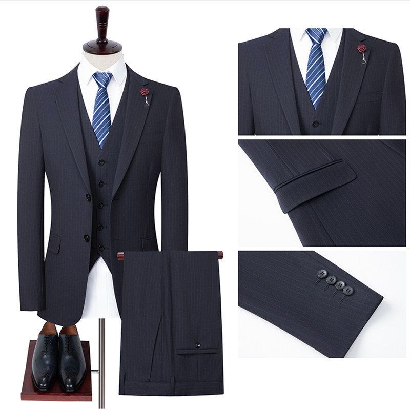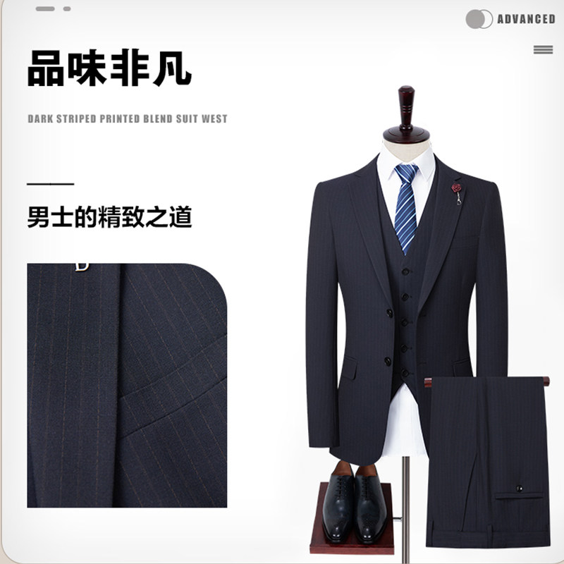 纯羊毛西服套装三件套配马甲
