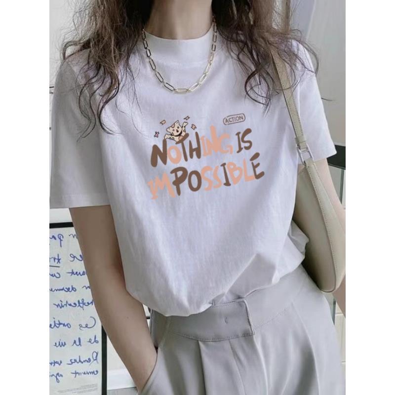 韩系白色半高领短袖t恤女士2025夏季新款基础款正肩半袖体恤上衣