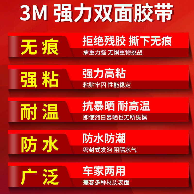 3m5108双面胶带强力无痕泡沫海绵防水汽车耐高温双面胶胶布学生用