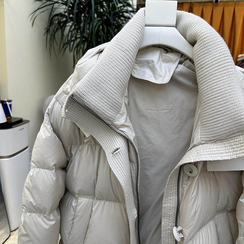 针织领短款加厚羽绒服女商场同款90白鸭绒韩版宽松连帽保暖外套冬