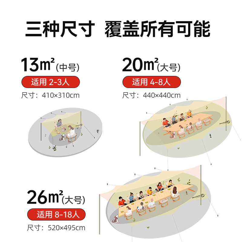 我飞黑胶天幕帐篷户外露营全套防晒装备防雨六角蝶形野营遮阳棚