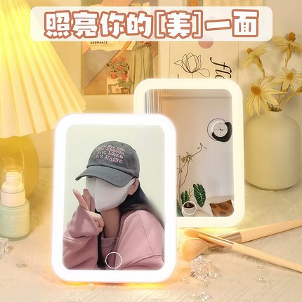 led带灯化妆镜便携折叠学生宿舍女随身办公室梳妆台式桌面小镜子